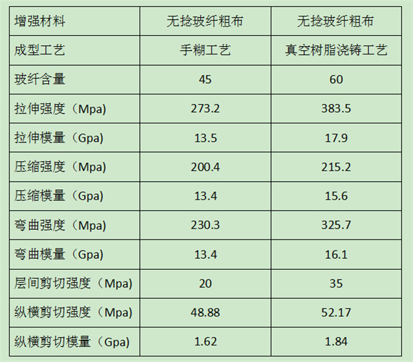 手糊工藝防雨帽和真空澆注工藝性能對比:
